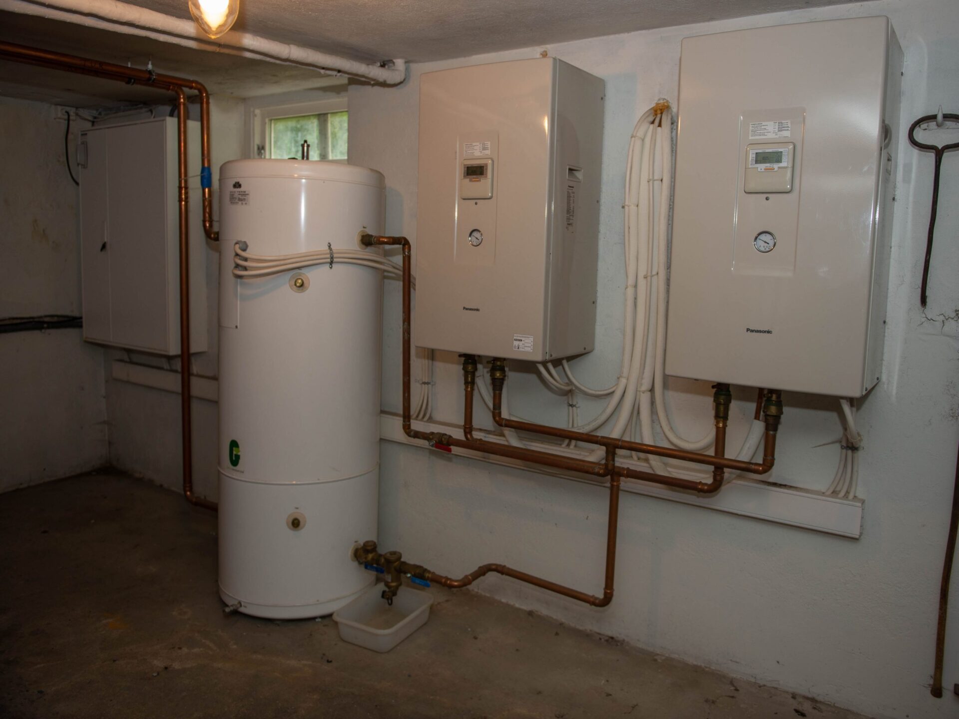 - Varmepumpe: To 12 kW Panasonic luft-til-vann-varmepumper