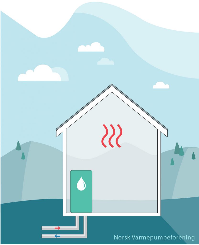 En bergvarme eller væske-til-vann-varmepumpe henter energi fra fjell, jord, grunnvann eller sjøvann. Denne varmepumpen gir deg en meget god besparelse uansett utetemperatur.