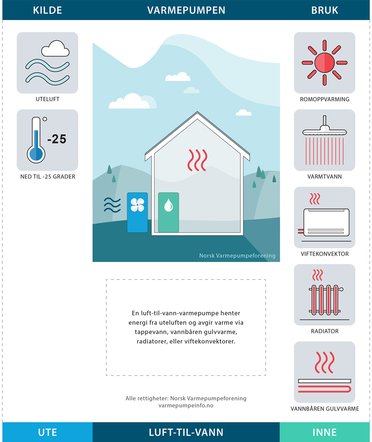 Illustrasjon: Norsk Varmepumpeforening, www.varmepumpeinfo.no